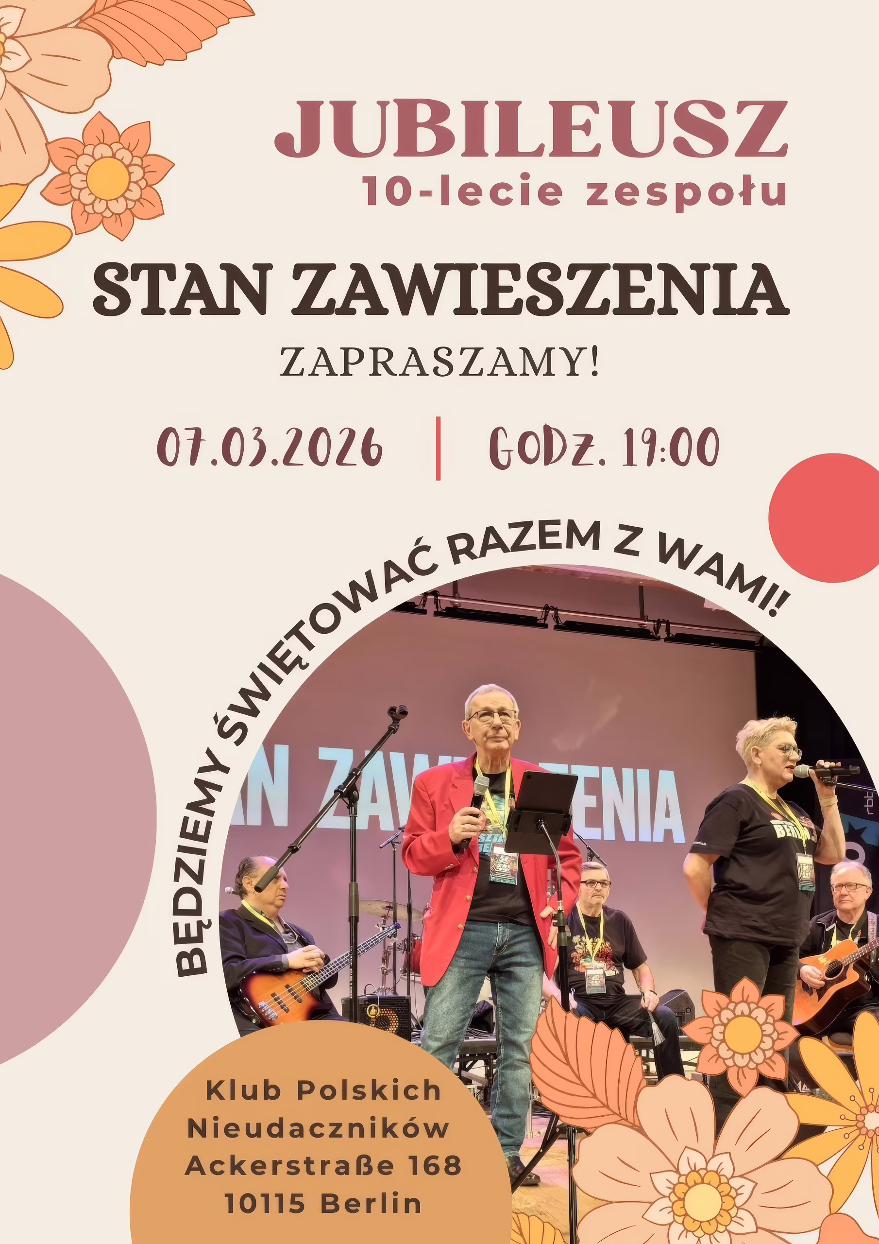 Stan Zawieszenia w Berlinie zagra wyjątkowy koncert, podsumowujący dekadę muzycznej działalności formacji. Zaproszenie na to szczególne spotkanie skierowane jest do sympatyków, przyjaciół i znajomych grupy, którzy chcą wspólnie z muzykami celebrować ten ważny krok na artystycznej drodze.